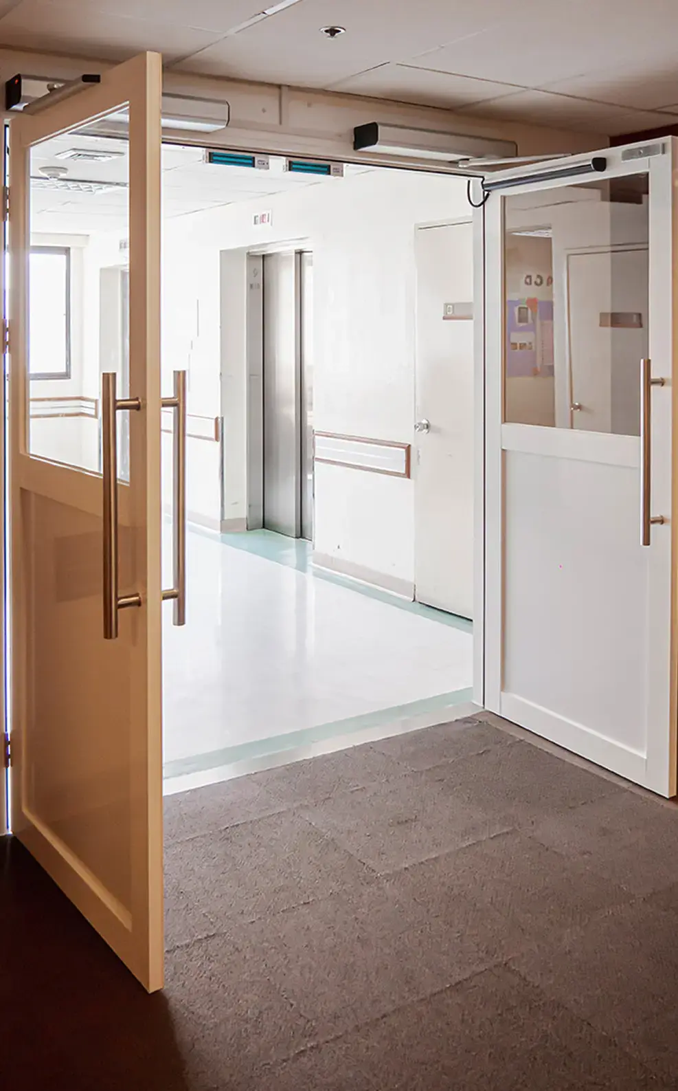 Our Door Studio automatic swing doors feature world-class design and a modern, luxurious style. They are suitable for use as a main entrance, emergency door, or fire exit. They are strong, durable, and can be used continuously for up to one million cycles before requiring maintenance. They can handle a weight of up to 600 kg, and the door leaves can open as wide as 1,600 mm. The advanced internal mechanism features exclusive patented technology.