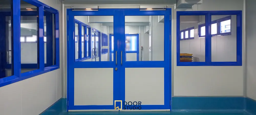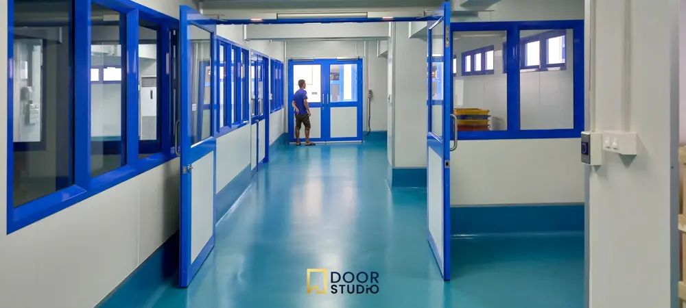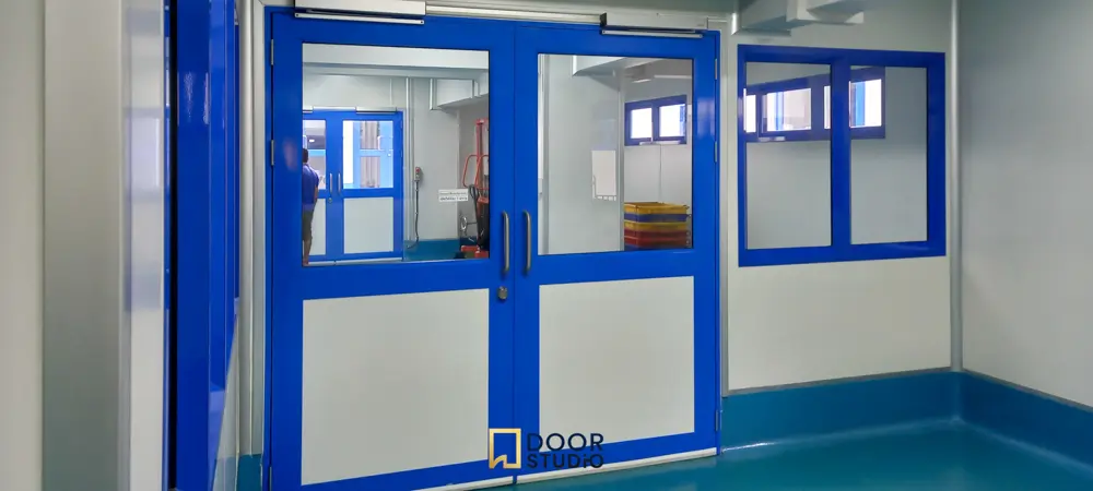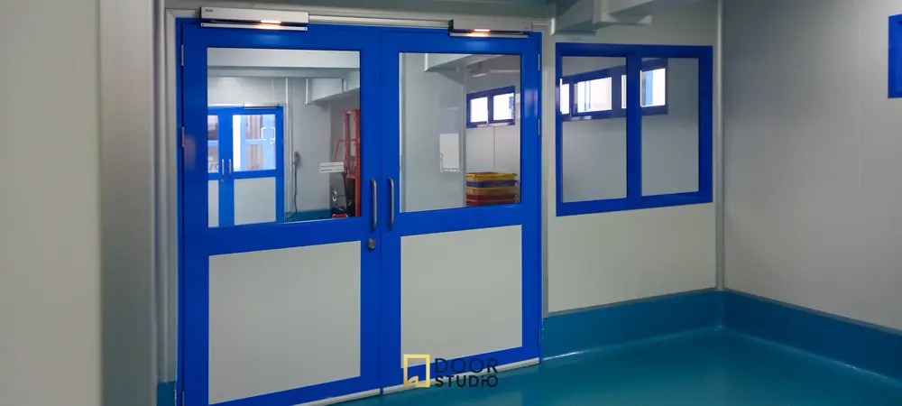 ผลการติดตั้งประตูสวิงอัตโนมัติบานคู่ โรงงานผลิตเครื่องสำอางค์ Tellme